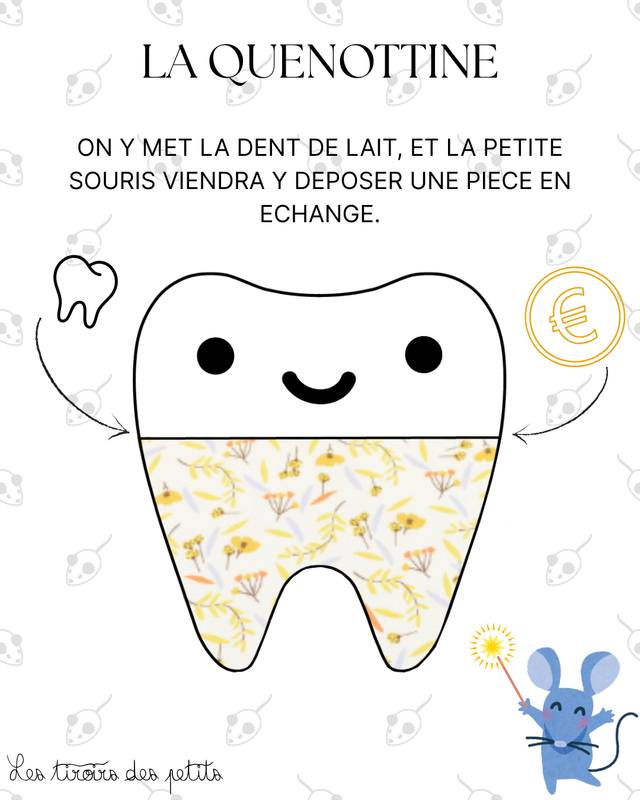 Découvrez La Quenottine, un coussin avec sa petite poche pour accueillir la dent et la pièce de la Petite Souris.